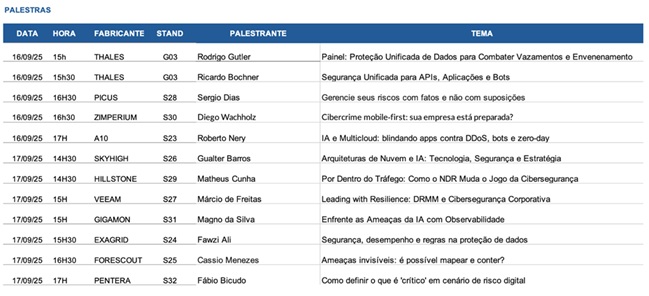 Os fabricantes parceiros da CLM chegam ao Mind The Sec reforçados por conquistas recentes de grande prestígio internacional. Entre os destaques, estão reconhecimentos em relatórios de referência do Gartner e do Forrester, como a liderança da Veeam em soluções de backup e recuperação, da Skyhigh Security e da Thales em proteção de dados e segurança em nuvem, além da posição de ponta da Picus Security e da Zimperium em simulação de ataques e defesa contra ameaças móveis. Empresas como A10 Networks, Gigamon e Forescout também foram premiadas por sua inovação em observabilidade de tráfego, segurança de aplicações e controle de dispositivos, enquanto a ExaGrid e a Hillstone Networks consolidaram reconhecimento em backup corporativo e firewalls de rede. Já a Pentera figura entre as 50 companhias mais inovadoras em cibersegurança, segundo o CB Insights.