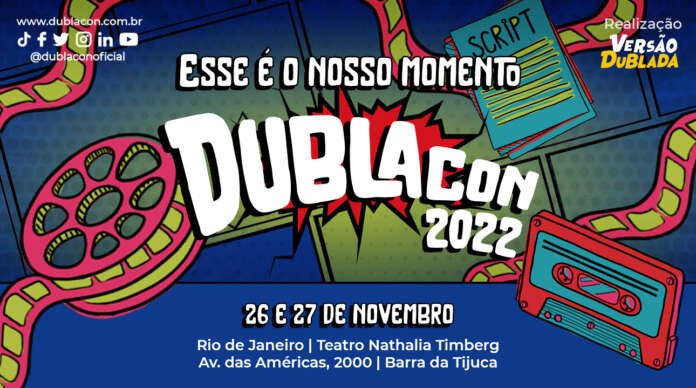 A DublaCon 2022 – A Convenção de Dublagem, que vai acontecer de forma presencial nos dias 26 e 27 de novembro e homenagear dubladores, diretores, tradutores, técnicos, produtores, estúdios e os fãs, já pode ser considerada o maior evento de profissionais da área. A programação completa será anunciada hoje através da LIVE a partir das 22h pelo Canal Versão Dublada no YouTube.