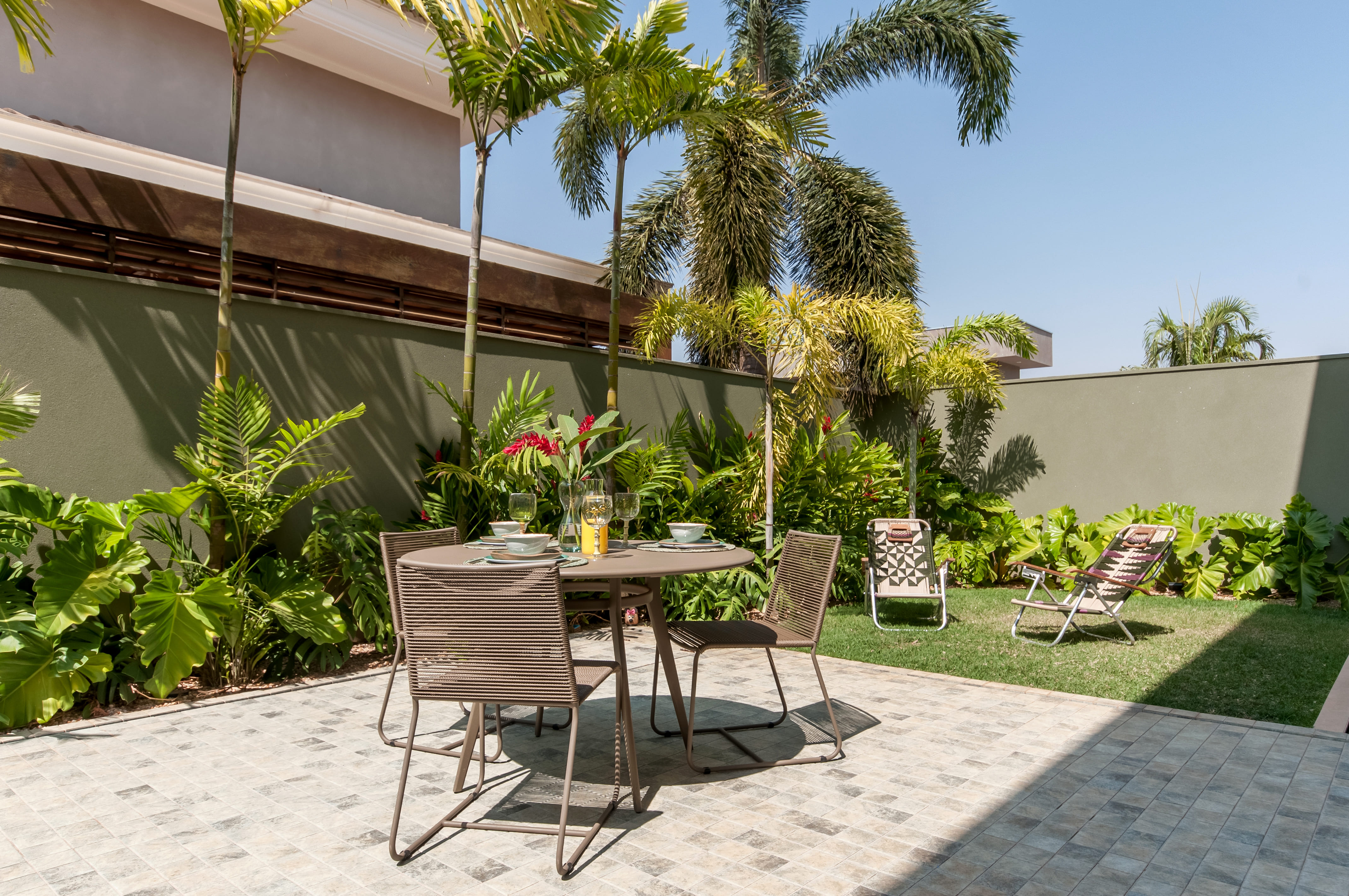 Em áreas de lazer com piscina, o paisagismo com diversidade de espécies torna a conexão das pessoas com a natureza ainda mais acessível | Projeto Paiva e Passarini Arquitetura | Foto: Xavier Neto