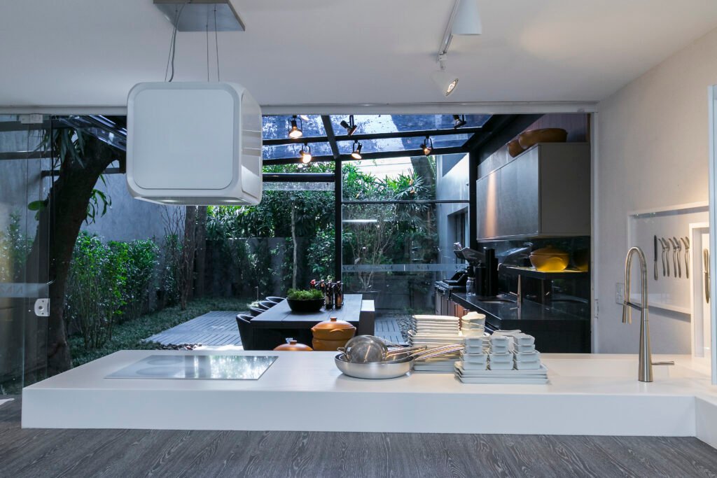 Segundo Karina Alonso, da SCA Jardim Europa, para quem tem espaço disponível é possível misturar materiais diferentes nas bancadas, dedicando cada uma delas para uma função diferente, como preparo dos alimentos, mesa de apoio, etc. É importante que ela seja pensada para o uso no dia a dia, de uma forma funcional.