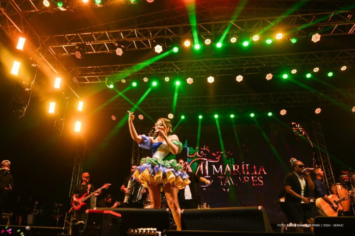 No palco, quem comanda a noite é Marília Tavares, uma das vozes femininas mais promissoras do sertanejo atual. Natural de Itaperuna (RJ), a cantora vem conquistando o país com sua potência vocal e um repertório que mistura romantismo e força, com sucessos que já ultrapassam milhões de visualizações nas plataformas digitais.