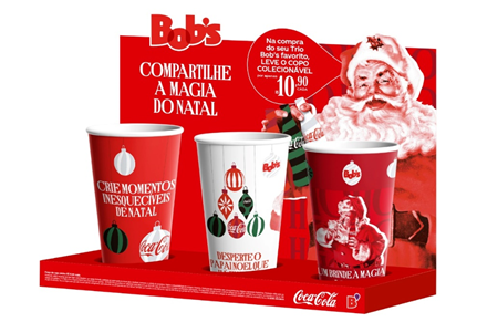 O Bob’s, primeira rede de fast food e franquia do setor no Brasil, e a Coca-Cola se uniram para uma parceria inédita, para celebrar o Natal. A campanha que vai até o dia 31 de dezembro, contempla o lançamento de três copos temáticos colecionáveis.