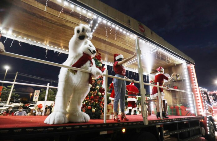 Chegada da Caravana Iluminada de Natal da Coca-Cola e Cortejo Natalino com a Cia Neia e Nando