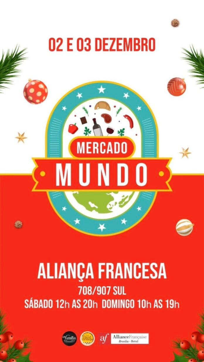O Mercado Mundo é evento gratuito e acontecerá nos dias 2 e 3 de dezembro de 2023, na Aliança Francesa, localizada na SEPS 708/907, no sábado (2), das 12h às 20h e no domingo (3) de 10h às 19h.