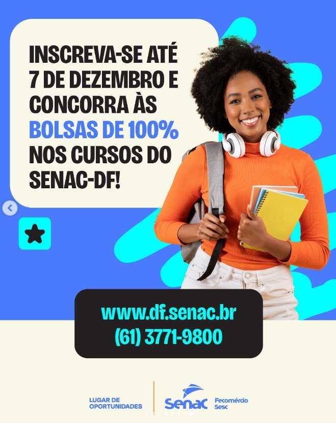 O Senac-DF reforça seu compromisso com a oferta de educação profissional acessível e transformadora, ampliando oportunidades reais de inserção no mercado de trabalho.