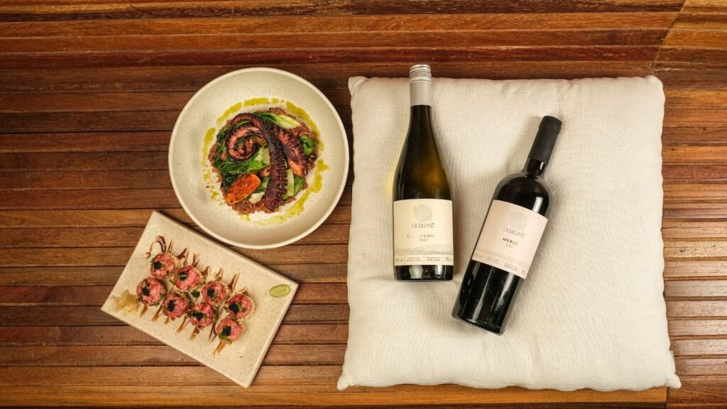 Para encerrar a refeição, a Torta Basca oferece um toque doce e marcante. A experiência pode ser complementada com os vinhos da casa, como o Gurumê Chardonnay (produzido pela vinícola Don Abel) e o Merlot Gurumê (assinado por Adolfo Lona), ambos disponíveis em garrafa de 750 ml acompanhados de taça. O cardápio de drinks inclui ainda o Gurumê Spritz e o Hikari.