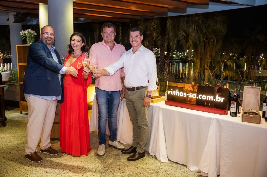 À frente da Vinhos S.A., os sócios Evandro Alves, Ivone Carvalho, Antônio Carvalho e Alexandre Azevedo receberam os convidados em uma noite de celebração do vinho e de expansão de mercado. Com mais de cinco anos de atuação, a empresa já é reconhecida como uma das maiores e mais consolidadas distribuidoras de vinhos do Centro-Oeste.