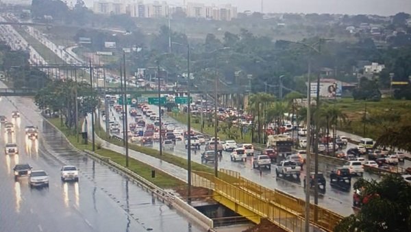 Estrada Parque Taguatinga (EPTG) com trânsito lento Reprodução/DER