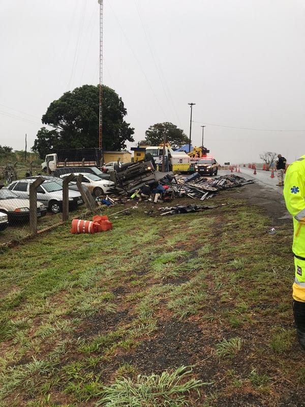 Um caminhão tombou em Cristalina deixando duas vítimas presas nas ferragensbReprodução