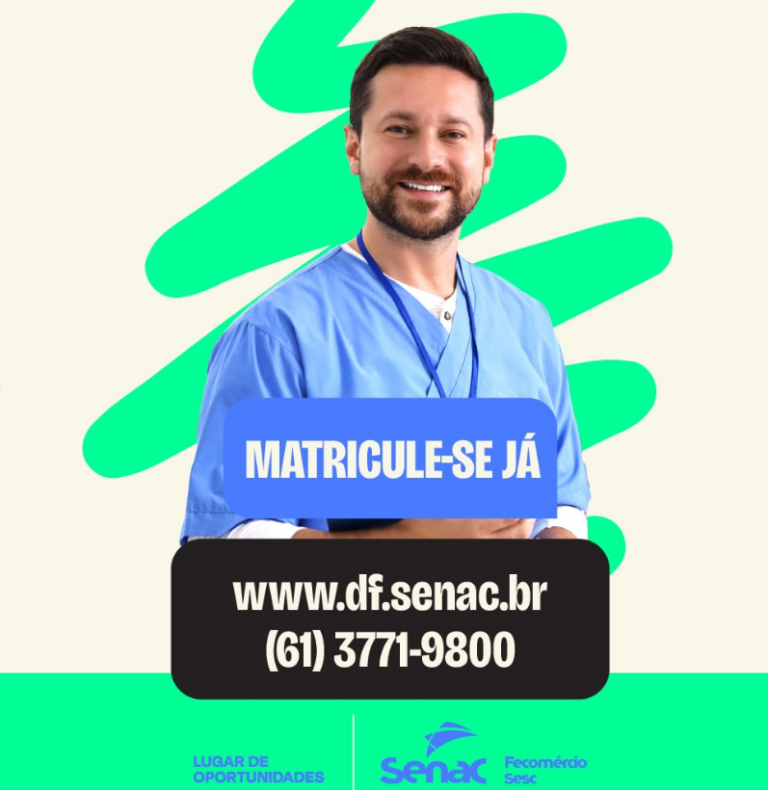 Ao investir em cursos da área da saúde, o Senac-DF contribui diretamente para a formação de profissionais capacitados a atuar em setores essenciais à sociedade, promovendo cuidado, bem-estar e qualidade de vida à população.