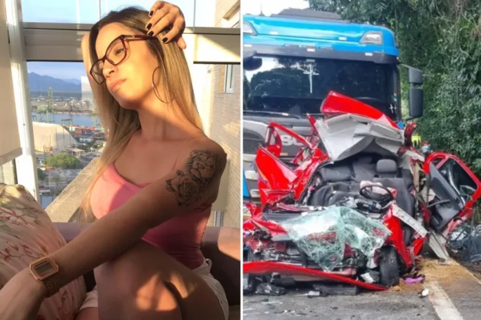 O veículo que foi esmagado estavam uma cirurgiã-dentista de 24 anos e um motorista de aplicativo, de 33 anos. A cirurgiã-dentista de 24 anos não resistiu aos ferimentos e morreu no local, na Via Anchieta, na altura de Cubatão (SP).